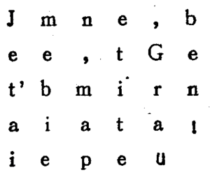 第三章 叔父也迷惑了 “这显然是卢尼文,”教授皱着眉头说,“可是这里有一个秘密,我要把它发现出来,除非…,” 他做了一个猛烈的动作,打定了主意。“坐在那里,”他接着说,用拳头给我指着桌子,“开始写。” 我立刻就准备好了。 “现在,我要念出相当于这些冰岛字的每个字母,由你听着写下来。我们要看看结果是些什么。可是,我以圣·密谢(圣·密谢,基督教里有名的首位天使。)的名义说话:你可要小心不许出错!” 默写开始了。我尽了我的力量;字母一个接一个地单独念出来,就成了下列的不可理解的文字: (校注:原书第一行第三词为seecFde,图我没看懂,但后文提到此处时都是J,故以后文为准改为J。第一词中的mm是一个字母。) ![]() 当这件工作结束了的时候,叔父立刻把我写过的这张纸抓过去,长久地研究它,非常专心。 “这里说的是什么呢?”他机械地自言自语。 说老实话,我不能够回答他的问题。但是他也并没有问我,他还继续自言自语: “这就是我们所谓的密码,”他说,“里面的意义是隐藏在一些故意弄乱的字母中的,如果我们把它们排列适当,就可以排成人们能够懂得的话,你想想,这里也许有一种说明或隐意,可以引导到重大的发现哩!”在我看来,这里什么意义也没有,可是我谨慎地隐藏起我的意见。教授又拿起那本书和那张羊皮纸,把两者加以比较。 “这两个文件不是一个人写的,”他说,“这个密码是在这部书的时代之后,而且我找到了一个不可否认的证据。这个密码上头一个字母是‘双m’,那是在图勒森书上找不到的,因为这个新字母要到十四世纪才加进冰岛文字里去。因此,在这抄本和这文件中间至少有两百年差异。” 这一点我承认,看起来是很合理的。 “因此我联想到,”叔父接着说,“大概是这本书的某一个收藏者写了这些神秘的字。可是,他妈的,这个收藏者是谁呢?他不会把他的名字写在这抄本的某一个地方么2” 叔父把眼镜推到额上,拿起一个度数很大的显微镜,仔细地观察这本书的头几页。在第二页的背面,也就是有副标题的那一页,他发现了一些污点,看起来好象是一块墨水痕迹。可是,继续细看之后,仍然可以看出一些大半擦去的字母。我叔父认为这值得研究;他拼命研究这块墨痕,在他那大显微镜的帮忙之下,最后终于认出了这些记号,——也是卢尼字体,他就毫不迟疑地念出来: “阿恩·萨克奴姗!”他用胜利的口气喊着,“这是一个人的名字,而且还是个冰岛人名!这是十六世纪的一位学者,一位著名的炼金术士呢!” 我看着叔父,非常佩服他。 “这些炼金术士们,”他接着说道,“阿维系那,培根,卢那,巴拉结索,都是些了不起的人,那时代的唯一的学者,他们的发现都值得我们惊异。这个萨克奴姗为什么不会把某种重大发明藏在这不可理解的密码里呢?应该是这样的。一定是的。” 教授的想象力被这个假设激动起来了。 “没有疑问是这样,”我鼓起勇气回答,“可是这位学者又为了什么要把某种奇妙的发现隐藏起来呢?” “为什么?为什么?啊!我怎么知道?加利里奥(伽利略?)不是把土星的发现这样隐藏起来的吗?不管怎么样,我们会知道的;我要知道这个文件的秘密;我将要不吃饭,不睡觉,直到发现它为止。” “哎呀!”我自己想。 “你也是这样,不吃不睡,阿克赛,”他接着说。 “天啊!”我对自己说,“幸亏我才吃了个双份!” “现在,”叔父又说,“我们必须找到这个密码的原文,这件事应该不困难。” 听到这话,我很快地抬起头来。叔父继续自言自语道:“没有更容易的事了。在这文件里有一百三十二个字母,其中有七十九个子音和五十三个元音。这差不多符合南欧文字中的一般比例,要是北欧文字,子音就要丰富得多了。因此它应该是一种南欧语言。” 这个结论是很有理由的。 “可是它是什么语言呢?” 这是要我的老师回答的问题,可是我很佩服他那深刻的分析能力。 “这个萨克奴姗,”他接着说,“是一个有学问的人;因此,在他不用祖国语言书写的时候,他一定挑选十六世纪文化人中的通用语言,我敢说是拉丁文。我如果错了,我可以试试西班牙文、法文、意大利文、希腊文和希伯来文。但是十六世纪的学者一般都用拉丁文书写。我可以事前肯定:这是拉丁文。” 我从椅子上跳起来。我对拉丁文的好感使我反抗这种假设:“这些古怪的字怎么能是诗人维吉尔(维吉尔(纪元前70-19):罗马诗人。)的美妙语言呢?” “是的!是拉丁文,”叔父又说,“但它是混乱了的拉丁文。” “好吧,”我自己想,“你要是能把它弄得不混乱了,那才算有本事呢。” “让我们来研究一下,”他拿着我写过的纸说道,“这里是一百三十二个字母,它们显然是混乱起来的。有些字其中只有子音,如第一个字mm.rnlls,相反,有一些字里的母音相当多,例如第五个字unteief,或倒数第二个字oseibo。这种排列显然不对;这些是根据我们不知道的规律,按数学方式排列起来的。看起来可以肯定,首先是写下正确的话,然后根据我们尚未发现的规律重新排过的。能找到解这个谜的钥匙,就可以顺利地念出来。阿克赛,你有这把钥匙吗?” 我没有回答这个问题;我有我的理由,我的眼光正停留在墙上的一个美妙的画像上,那是格劳班的画像。叔父的这个学生正在阿尔童纳,在她的一个亲戚那里;她不在这里使我非常忧郁,因为,我现在可以说出来,这个漂亮的维尔兰女孩子同教授的这个侄子正在恋爱,