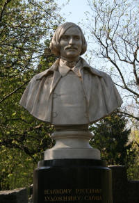 ![]() 果戈里(1809.4.1~1852.3.4) Никола́й Васи́льевич Гоголь-Яновский 尼古莱·瓦西里耶维奇·果戈里·亚诺夫斯基,俄国现实主义文学的奠基人。他的创作与普希金的创作相配合,奠定了19世纪俄国批判现实主义文学的基础,是俄国文学中自然派的创始者。以其创作加强了俄国文学的批判和讽刺倾向。他对俄国小说艺术发展的贡献尤其显著,车尔尼雪夫斯基在《俄国文学果戈理时期概观》(1856)中称他为“俄国散文之父”。屠格涅夫、冈察洛夫、谢德林、陀斯妥耶夫斯基等杰出作家都受到果戈理创作的重要影响,开创了俄国文学的新时期。 他最著名的作品是《死魂灵》和《钦差大臣》。 *** 果戈理出生于乌克兰波尔塔瓦省密尔格拉德县大索罗庆采村,祖先是来源于乌克兰的小贵族,具有波兰血统。他的父亲瓦西里·阿法纳西耶维奇·果戈理·亚诺夫斯基(Василий Афанасьевич Гоголь·Яновский)是当地有名望的乡绅,曾在邮电部门供职,做过八品文官,后辞去公职,在乡下当地主,同时开始尝试写作,并成为一名诗人和民间喜剧作家。他的父亲经常在朋友家的家庭舞台上上演自己写的喜剧,还在其中扮演主要角色。这一切给早年间的果戈理留下了深刻的印象,激发了他对戏剧乃至文学的爱好。 他的母亲名叫玛丽娅·伊凡诺芙娜·果戈理·亚诺夫斯卡娅(Мария Ивановна Гоголь·Яновская)(娘家姓氏为:科夏洛夫斯卡娅,Косяровская),是一名虔诚的东正教徒,这对后来果戈理的东正教狂热埋下了一定的基础。 果戈理从小喜爱乌克兰的民谣、传说和民间戏剧。他于1821~1828年在波尔塔瓦省涅仁高级科学中学就读期间已经博览群书,并积极参加学校的文艺活动,曾扮演过冯维辛的讽刺喜剧《纨绔少年》中的主角以及其他角色,而且演得很成功(他后来写的也是讽刺喜剧)。 他在这所中学受到了十二月党人中的一些诗人、亚历山大·普希金的诗歌的影响(这促使他在创作初期想当一名诗人),他还受到了法国启蒙作家著作的深刻影响。这一切为他后来的创作打下了基础。在农村的生活是他创作的重大素材,农村生活促成他写成了《狄康卡近乡夜话》、《马车》、《死魂灵》等与农村有关的佳作。 1828年,果戈理中学毕业,前往彼得堡,想在司法界谋得一官半职,他身上还带着写成了的田园诗《汉斯·丘赫尔加坚》(长诗)的手稿,这是他的处女作。1829~1831年先后在圣彼得堡国有财产及公共房产局和封地局供职,亲身体验到小职员的贫苦生活。在此期间还到美术学院学习绘画。 在彼得堡,他没有获得赏识,然后几经周折,成了圣彼得堡国有财产及公共房产局和封地局的一名缮写员,靠此维生,亲身体验到了小职员的贫苦生活(所以他在《外套》和《狂人日记》中写的是缮写员的故事,这里有着对他自己生活的回忆)。在此期间,他在美术学院学习了绘画。他后来在《涅瓦大街》、《肖像》等中篇小说中写的都是画家的悲剧故事或传奇故事。1829年,他发表了《汉斯·丘赫尔加坚》这一长诗,用的是真名。这首长诗是他登上了俄国文坛,但并没有获得太多的关注。他很快意识到诗歌创作并非他的强项,于是转向了小说和喜剧。1830年,他以“果戈理”(Гоголь,他的姓氏的一半)为笔名发表了小说《圣约翰节前夜》,这部小说得到了诗人瓦西里·茹科夫斯基的赞赏,并与之成了莫逆之交。 1831年9月,短篇小说《狄康卡近乡夜话》发表,情节迂回曲折,充满幻想,具有乌克兰民间风格,内容大部分根据乌克兰民间传说写成,吸取了民间狂欢文化的营养,充满了欢快和幽默的语言,歌颂劳动人民的智慧、勇敢、情爱和热爱自由的性格,嘲弄邪恶势力的愚昧,被认为受了浪漫主义的影响。9月,他出版了以这篇作品的题目命名的短篇小说集,受到了普希金和别林斯基的好评,他们称俄国文学已进入果戈理时期。这一年,他遇到了普希金,之后普希金成为他的朋友并给他提供了许多创作素材,此人的现实主义作品对他影响极大,比如《钦差大臣》和《死魂灵》的素材就是普希金提供的。1834年,他进入圣彼得堡大学,当副教授,教授历史,伊万·屠格涅夫就是他的学生之一。 1835年春季,他出版了喜剧剧本《三等弗拉基米尔勋章》和《婚事》,并开始迷恋喜剧创作。《婚事》是他早期喜剧的代表作,宣扬了婚恋自由。同年,他出版了两部短篇小说集:《彼得堡故事》(Петербургские Повести)和《密尔格拉得》。《彼得堡故事》中有《涅瓦大街》、《鼻子》、《肖像》、《外套》、《狂人日记》、《马车》、《罗马》构成。《密尔格拉得》里面有《旧式地主》、《塔拉斯·布尔巴》、《两个伊凡吵架故事》等优秀的中短篇小说。相较以前,这些小说在题材上有了新的开拓,思想上更趋成熟,风格上有重大发展(讽刺的力度增强,不幽默的也更严肃),思想容量上也更为深刻。短篇小说《罗马》是他所有小说中诗意最浓的一部。而他本人也被称为及普希金之后的“文坛盟主”、“诗人的魁首”。这一年,他根据普希金启发出来的素材,开始构思长篇小说《死魂灵》,并从圣彼得堡大学离职,专事创作。 1836年,根据普希金提供的一则荒诞见闻,果戈理在两个月内创作出了五幕喜剧《钦差大臣》。创作期间,他对戏剧的社会使命有了越来越明确、越来越深刻地认识。他要求在舞台上体现当代社会的