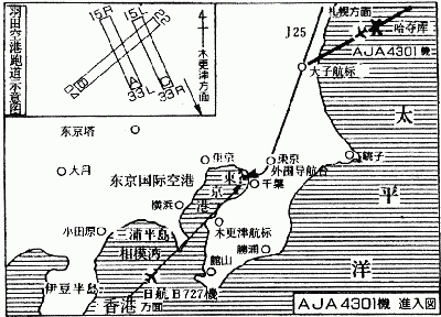 大厅内侧的门口,正如大竹提醒的那样,二月的寒风拂面而来。这对于由纪子红得发烫的脸颊,不啻为旱季迎来了大雨,求之不得。 无论哪个国家,空港的布局基本上大同小异,说不上有什么特色可以让人欣赏,只是夜景,显得格外美丽娇娆。移动的灯光,是正在滑行起飞的国际航班飞机。跑道两侧,闪烁着红、白、蓝、绿、黄组成的彩色灯带。这,也许是跑道灯和着陆灯等各种照明设施。 大厅内侧门口,风不断刮来,果然人影稀少。两侧,是挡风玻璃。可丝毫阻挡不住二月的寒风。 “夫人,来,到这里来!” 大竹专务大声喊道,引导由纪子到矮塔形状的商店屋里。在这里,不大声嚷嚷,对方就听不见你在说什么。附近的停机坪上,时不时传出飞机的引擎声。 走进塔屋里,风被挡在墙外,这里,有小卖店和游戏机房。墙上,垂挂着一台播放飞机到达时刻的电视机。 “还有二十分钟!” 大竹专务看了一下手表,对由纪子说442国际航班的到达时间。 “也许现在已经在空港上空盘旋,正等待空中交通管制所的降落命令。如今的羽田空港,与地铁站台上下班的交通高峰差不多。” 大竹专务深深地吸了一口气,隔着顶层玻璃仰望天空,由纪子也跟着朝天空望去。此刻千叶县一带上空,正如大竹专务所说,等待进入东京空港的飞机熙熙攘攘,不停地闪烁着灯光。灯光,是为了防止飞机之间相撞。 在这些飞机里,也许有丈夫乘坐的斯普鲁多808型喷气式客机?! ——这时刻,由纪子思念丈夫的心,犹如大海里的波涛在翻腾。 2 当天下午六时三十八分,全日航绕道北冰洋飞回日本的442国际航班AJA4301客机,飞入R19航线,经过距离茨城县大子东北一百英里海上的“哈多库”临空地点,朝羽田空港飞来。 六时四十八分,飞机在大子上空与羽田空港的空中交通管制所取得联系,通报了所在位置、高度和经过时刻。尔后,飞入东京——大子——松岛——之泽——札幌的J25L的飞行航线。 经过大子的指向标,AJA4301客机一边与羽田空港空中交通管制所联络降落事宜,一边朝千叶县佐昌市的东京外围导航台上空飞去。 如果羽田空港处在起飞降落的高峰,飞机必须在东京外围的关卡区域内无线设施的上空盘旋等待,或者在超短波全方位无线标识的电波点上空盘旋等待。飞机之间的上下距离,必须保持三百米左右。一边盘旋,一边等待空中交通管制所调度员的降落命令。 六时五十六分,该客机以三千三百米的高度经过千叶县佐昌市的东京导航台上空。两分钟过后,该机进入东京空中交通管制所的雷达区域。 六时五十九分,该机与东京空中交通管制所联系。 “我机从千叶上空就已经进入降落状态。现在我们停止仪器飞行,转入目测飞行,等待贵所的着陆命令。” 3 AJA4031客机,由于已经在千叶上空与空港的东京空中交通管制所取得联系,并被允许着陆。因此,该飞机没有按照正常路线飞往江户川河口。而是缩短距离,抄近路朝空港飞来。 与此同时,由香港返回的日本航空公司波音727客机,以仪器飞行方式径直从木更津上空朝羽田空港飞来。 空中交通管制所的调度员于七点准向AJA4301客机喊话,是否看见日航B727客机? AJA4301客机回答。 “没有看见。” 调度员得到来自AJA4301客机的回答后,便命令日航B727客机使用33L(A跑道)着陆。 ![]() 三十秒钟过后,该调度员命令AJA4301打开着陆灯光。从木更津直线飞来的日航B727客机,与从千叶走捷径飞来的全日航AJA4301客机,已经同时进入距离跑道二千米前后、高度二百米左右的区域,有随时可能相互撞机的危险。 也就是说,没有保持相互之间规定的距离,或侥幸擦肩而过,或酿成撞机事故。 调度员的命令,理所当然是正确的。 可AJA4301客机,竟然没有回答。 二十秒钟过后,调度员再度向该机喊话,依然没有回答。 “快报告空中现在的位置!” 另一方面,从香港飞来的日航B727客机,已经确认本身与AJA4301客机的间距和相互所在位置。同时,收到调度员向AJA4301客机的喊话内容,并得知AJA4301客机两次没有回答。 AJA4301客机应该从右侧飞来。于是,日航机长迅速命令副飞行员密切注视右侧,与随时出现的AJA4301客机保持规定的间距。虽连续两次没有回答的间隔很短,可AJA4301客机猛然间不知去向。 “AJA4301客机,我们是东京空中交通管制所,你现在在哪里?请回答!” “一AJA4301客机,我是东京空中交通管制所的调度员,听到喊话了吗?” 依然没有回答。 这一段时间带里,国际航班和国内航班相继着陆,羽田空港上空等待着陆命令的飞机迅猛增加。尤其从傍晚到夜里,是飞机到达的高峰。它们在空中盘旋,随时等待着陆的命令。 | |
